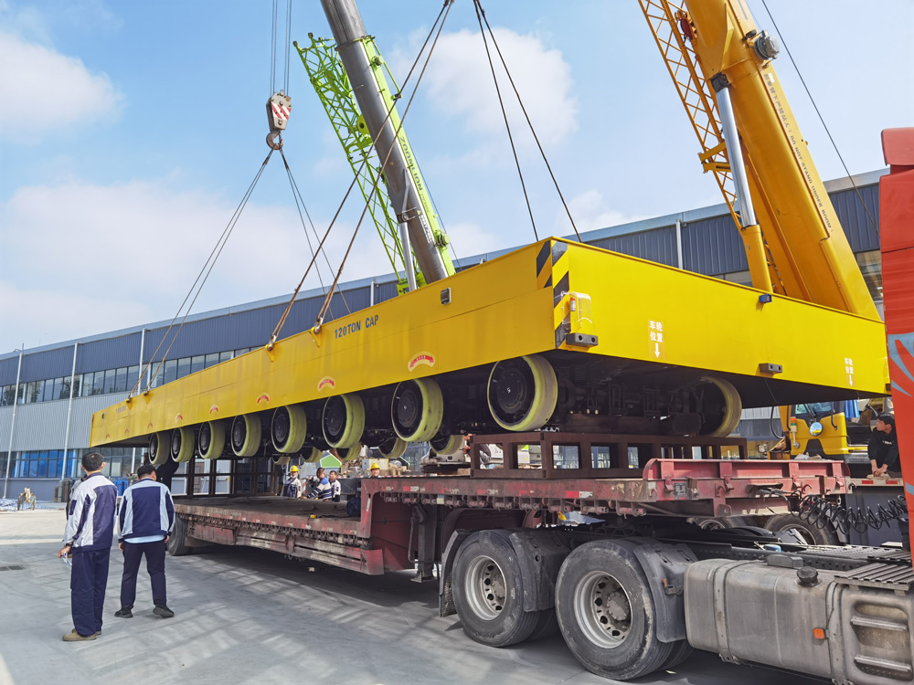 近日,天津客戶定制的120噸大型重載無(wú)軌電動(dòng)平車正式交付發(fā)往客戶現(xiàn)場(chǎng)。此次交付的無(wú)軌轉(zhuǎn)運(yùn)車體量驚人,長(zhǎng)達(dá)15米寬達(dá)5米,其核心結(jié)構(gòu)采用高強(qiáng)度整體車架與精密鋼板焊接技術(shù),確保在承受120噸極限載荷時(shí),車體依然穩(wěn)定牢固。